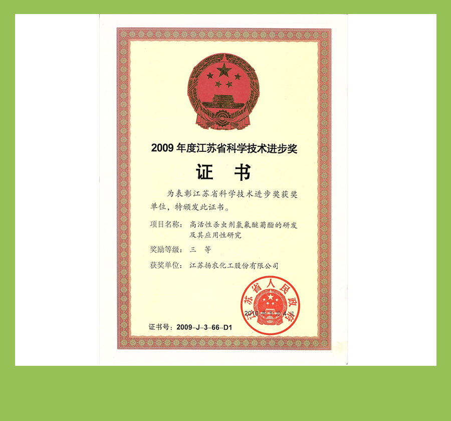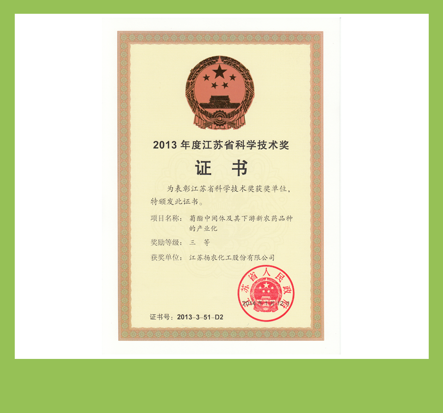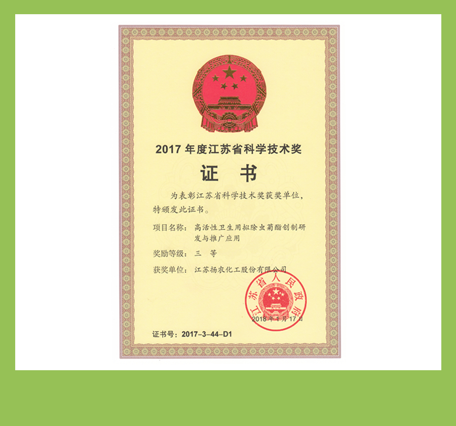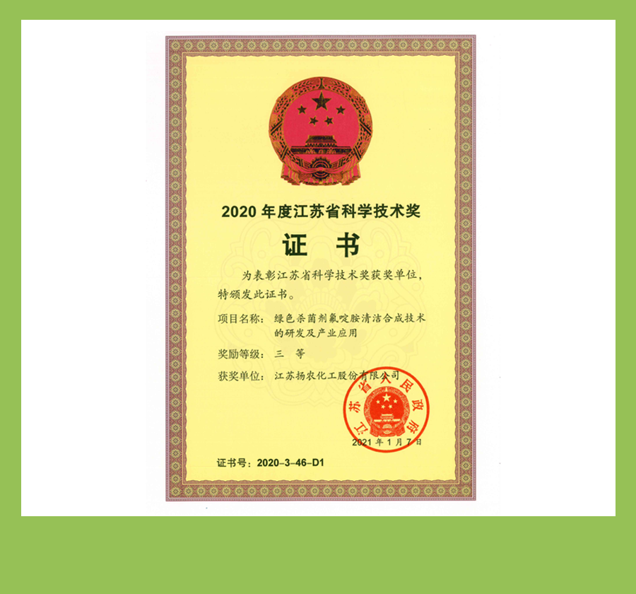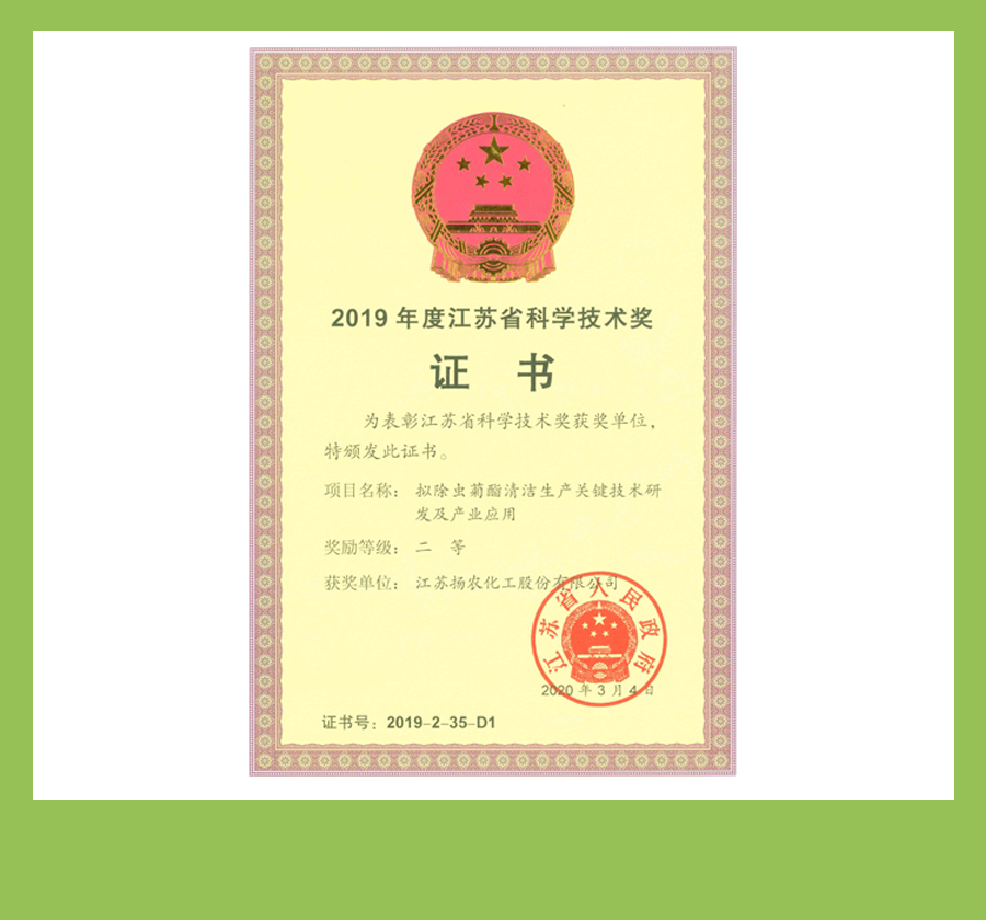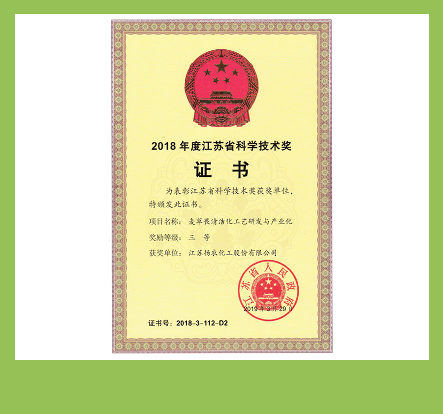 公司围绕中国中化“科学至上”理念,聚焦新扬农“仿创结合,原药与制剂一体化”战略,“用创新改变未来,用化学美化生活”,以科技和创新开拓中国农业现代化和可持续发展道路,以中国创新实践服务全球农化市场。“十二五”至今,公司累计承担国家科技支撑计划、国家重点研发计划、工信部产业转型升级等国家级项目16项,公司产品和核心技术研发与产业应用等各类项目获取中国工业大奖、中国专利优秀奖、江苏省科技进步奖、中国石油和化学工业联合会科技进步奖等省级以上科技奖励50余项。