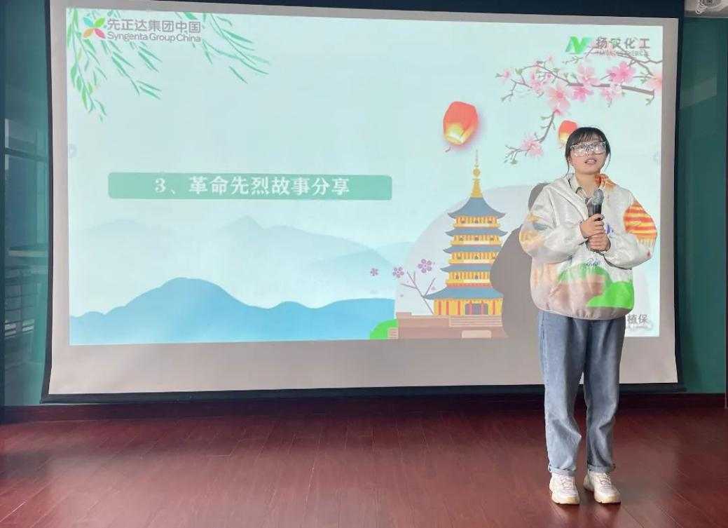 扬农股份党群工作部林建育作为党员代表给大家分享了《秋山红叶走征途——革命烈士江上青的故事》,优嘉公司01工段陈欣作为团员代表分享了《小洋口反击战的故事》,勉励大家通过聆听党史故事,追忆英雄,传承壮志,赓续血脉,勇担使命,凝聚起干事创业的磅礴力量。