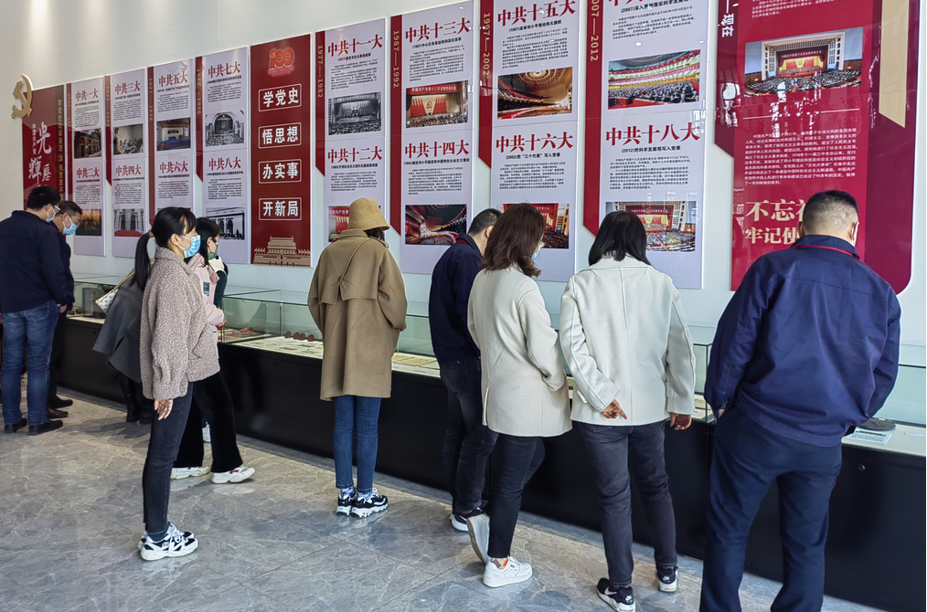 大家一同走进红色初心馆,通过参观红色革命物件、3D互动科技等回顾中国共产党建党百年大事记,深刻感受到了革命先烈们孜孜以求的奋斗精神,汲取了攻坚克难的精神力量。