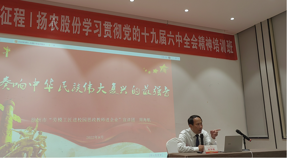 为深入学习贯彻党的十九届六中全会精神,激励广大党员继承和发扬党的光辉传统,营造喜迎党的二十大胜利召开的浓厚氛围,9月16-17日,扬农股份直属支部组织学习贯彻党的十九届六中全会精神培训班,所属支部党员共40人参加。