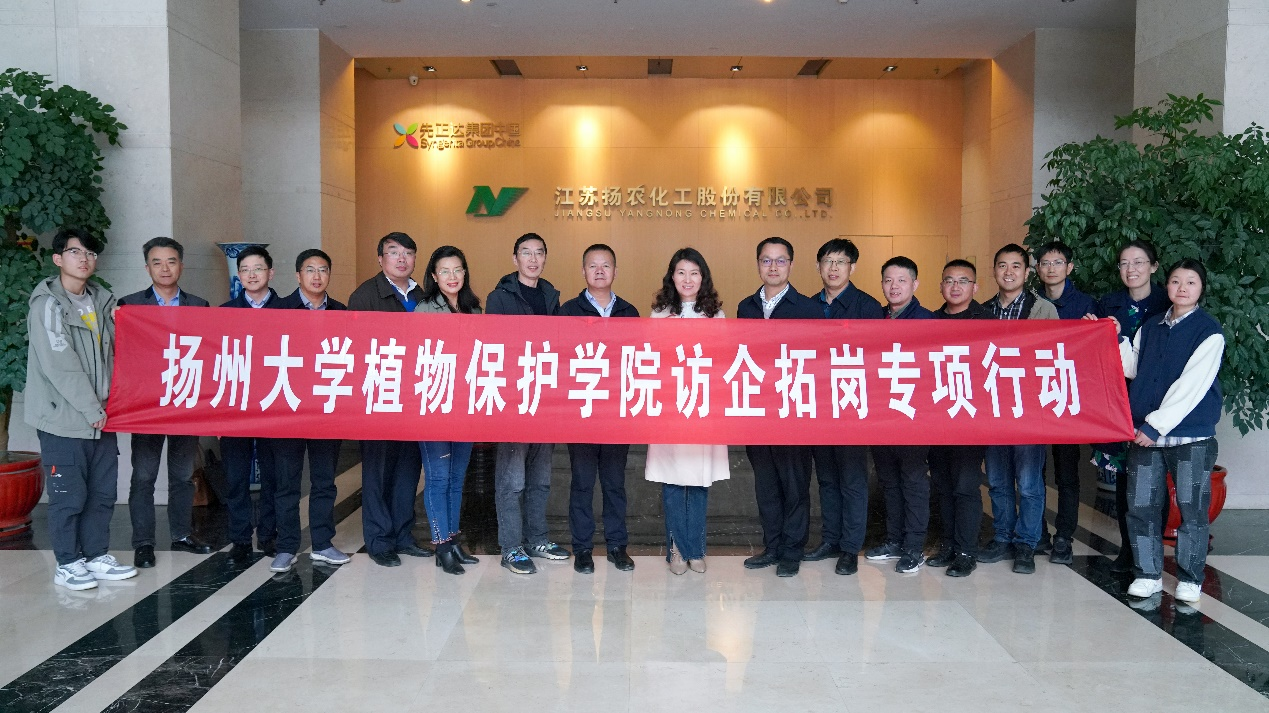 4月25日,扬州大学植物保护学院党委书记侯燕、院长杨国庆携院内骨干教师、学生代表一行12人赴我司开展“访企拓岗”专项行动。扬农股份纪委书记、副总经理姜友法出席活动,科技管理部相关人员参加了交流。