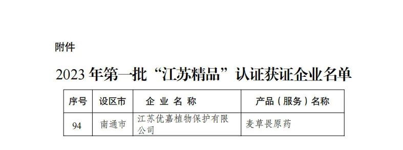 10月27日,江苏质量大会举行会上发布了2023年第一批“江苏精品”认证获证企业名单,我司优嘉植保榜上有名!