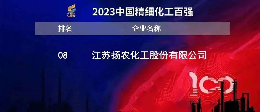 扬农化工位列2023年度中国精细化工百强榜单十强