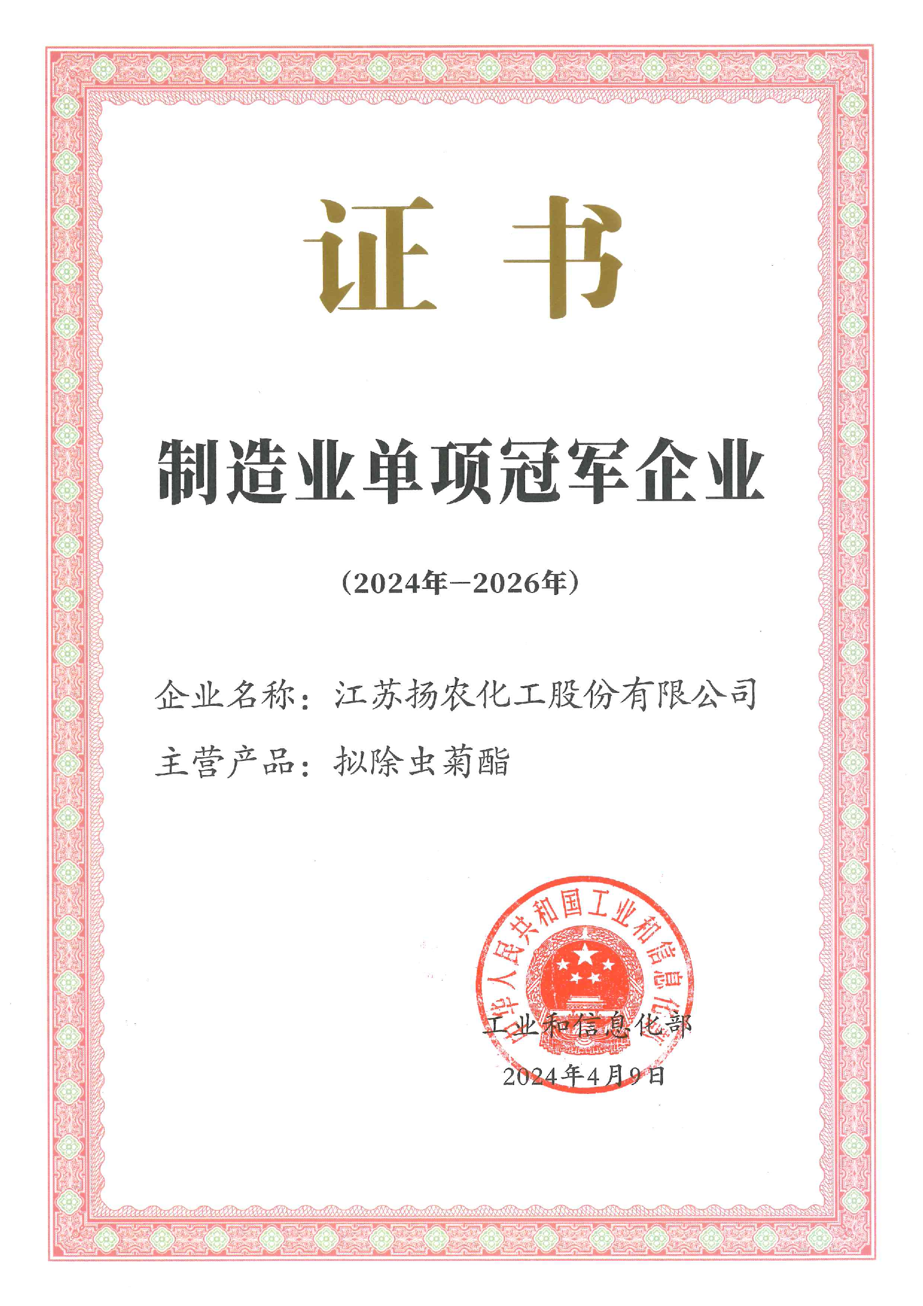 我司是全球拟除虫菊酯核心供应商,单项冠军产品拟除虫菊酯品种及规模位列全国第一,是目前国内唯一具有全产业链条的拟除虫菊酯生产商,可以从基础化工原料开始,合成中间体并生产拟除虫菊酯原药。我司始终以科技创新为引领,坚持自主创新,先后攻克多项菊酯关键核心技术,打破了跨国公司在中国市场的多年垄断。通过仿创结合,扬农股份已开发出30多个菊酯类农药,构筑起全球规模最大、配套最全、技术水平领先的菊酯产品群,氯氟醚菊酯、右旋反式氯丙炔菊酯、四氟苯菊酯、四氟醚菊酯、右旋反式七氟甲醚菊酯等全球首创,为中国农业创新发展贡献了重要力量。目前,我司创制新品种四氟苯烯菊酯的产业化开发工作正有序推进,将在筑牢企业核心竞争力,赋能产业高质量发展等方面持续发挥积极作用。