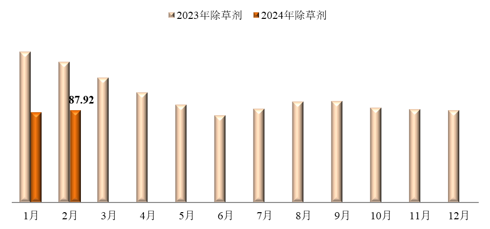 2月,中国农药价格指数止跌上扬。据中国农药工业协会统计,2月农药价格指数(CAPI)为88.72,环比上涨2.13%,同比下跌30.09%。
