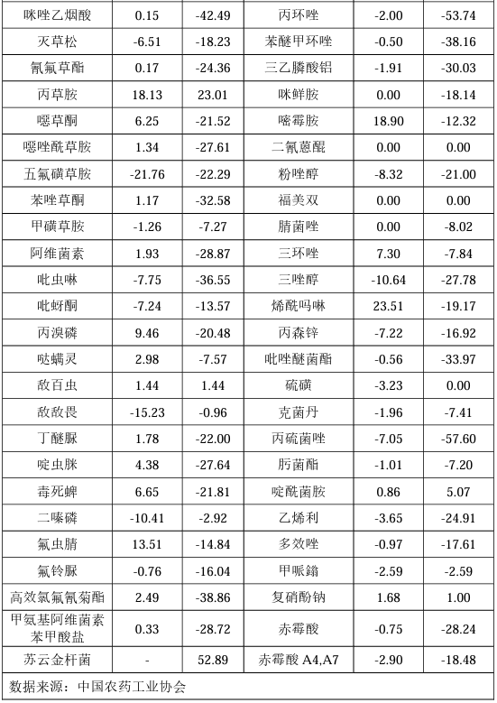 表1  2024年2月部分农药原药加权平均成交价格运行情况(%)